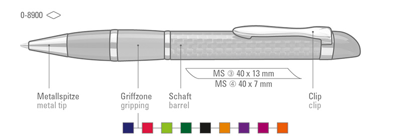 Edler Carbonfaser Metalldrehkugelschreiber mit farbiger Griffzone,