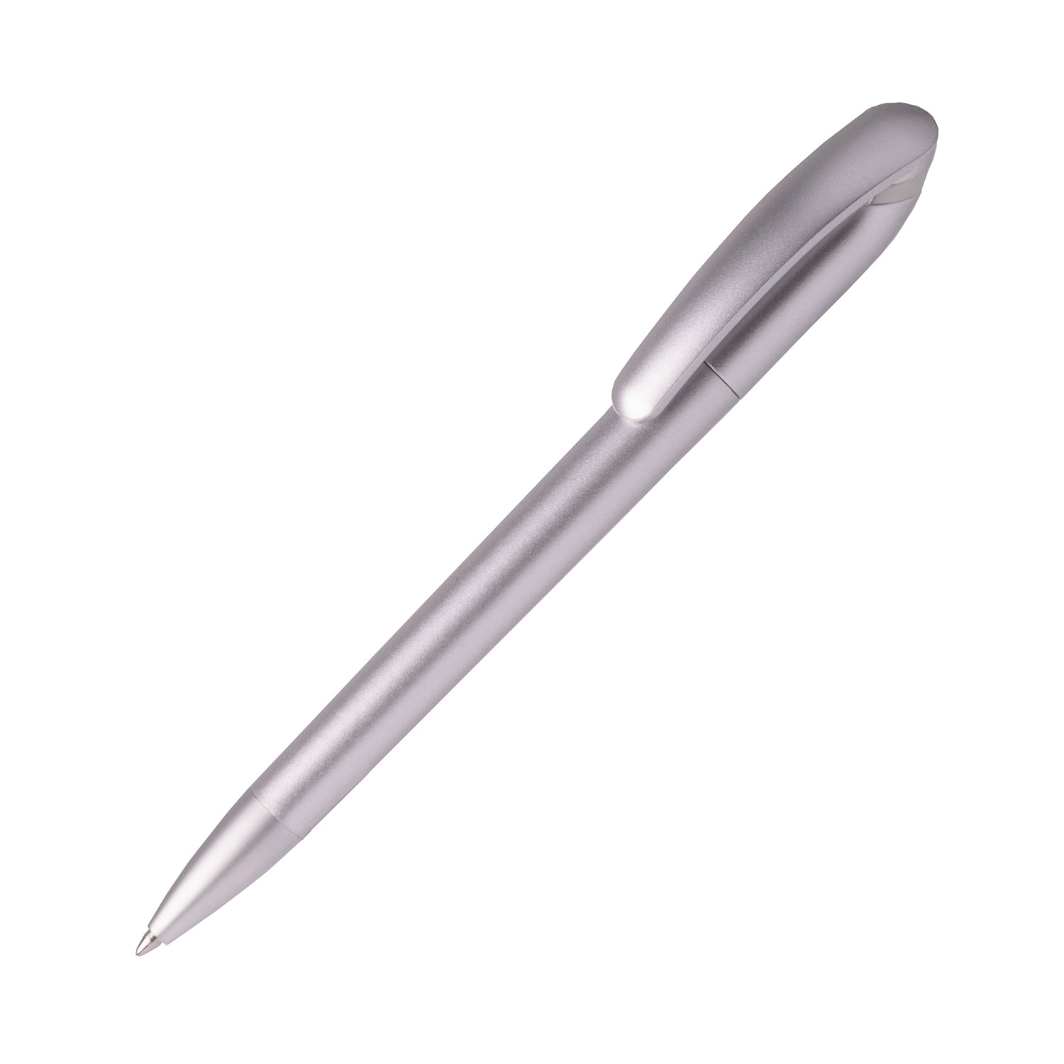 Drehkugelschreiber, Schaft und Clipteil in edler Silber-Optik, Oberfläche matt,