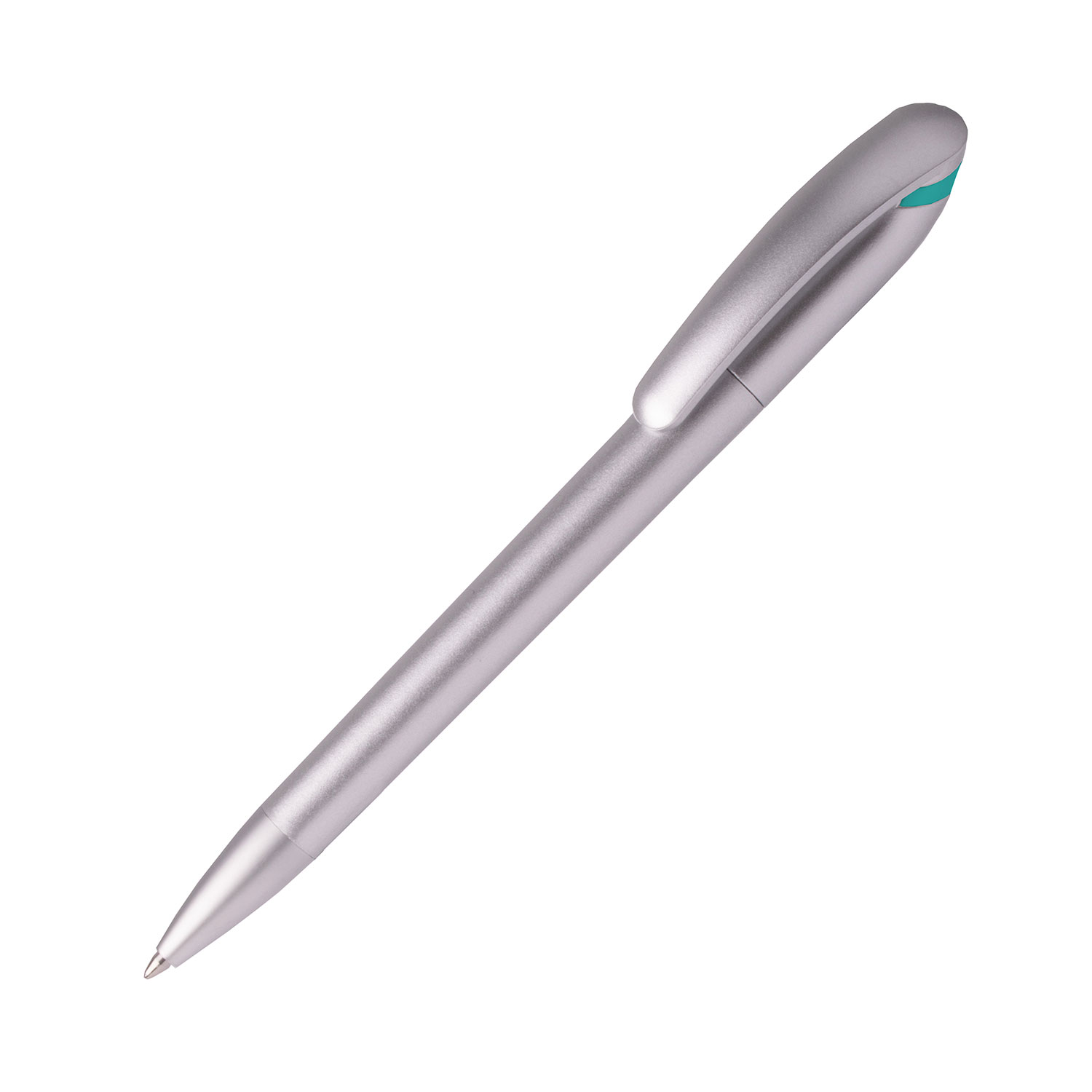 Drehkugelschreiber, Schaft und Clipteil in edler Silber-Optik, Oberfläche matt,
