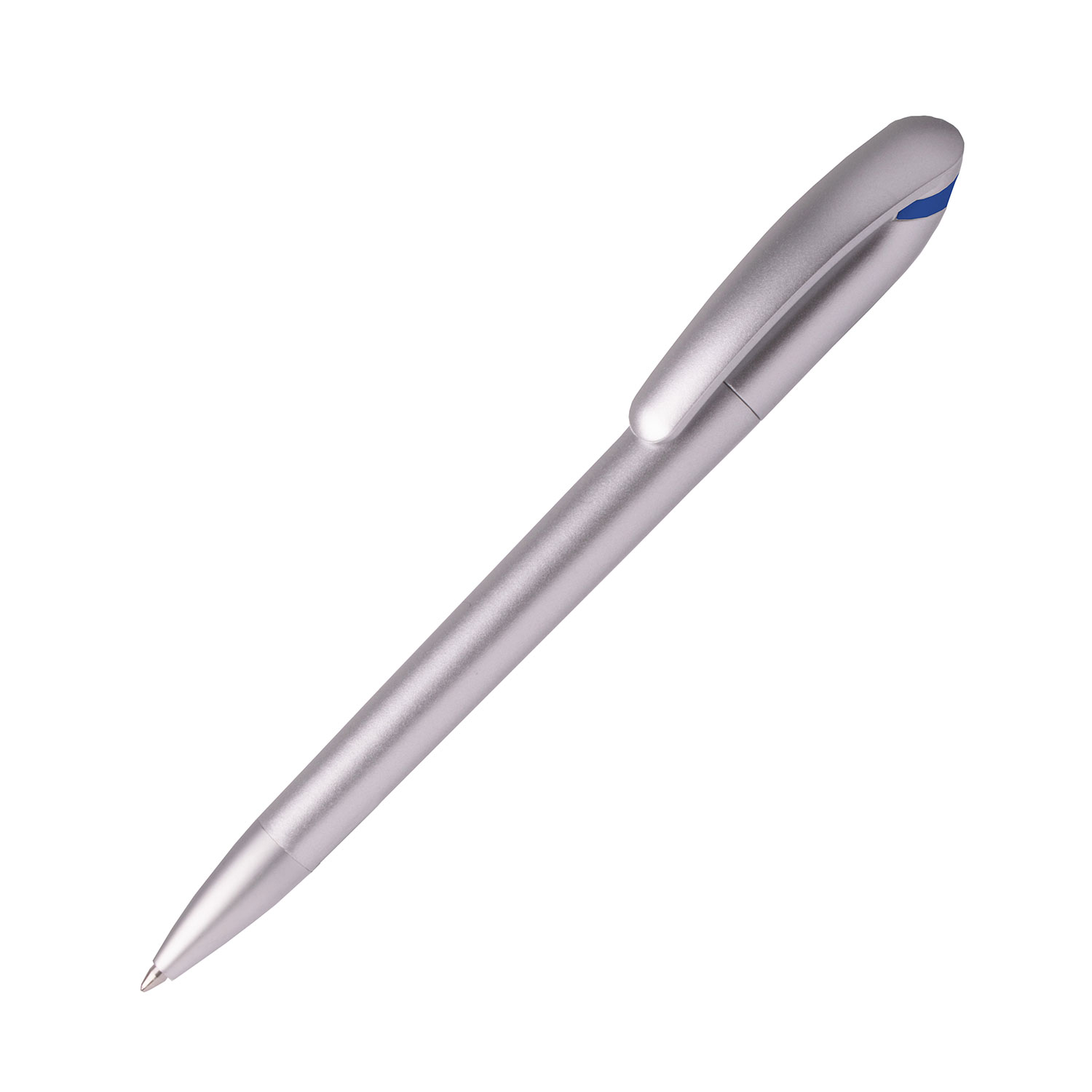Drehkugelschreiber, Schaft und Clipteil in edler Silber-Optik, Oberfläche matt,