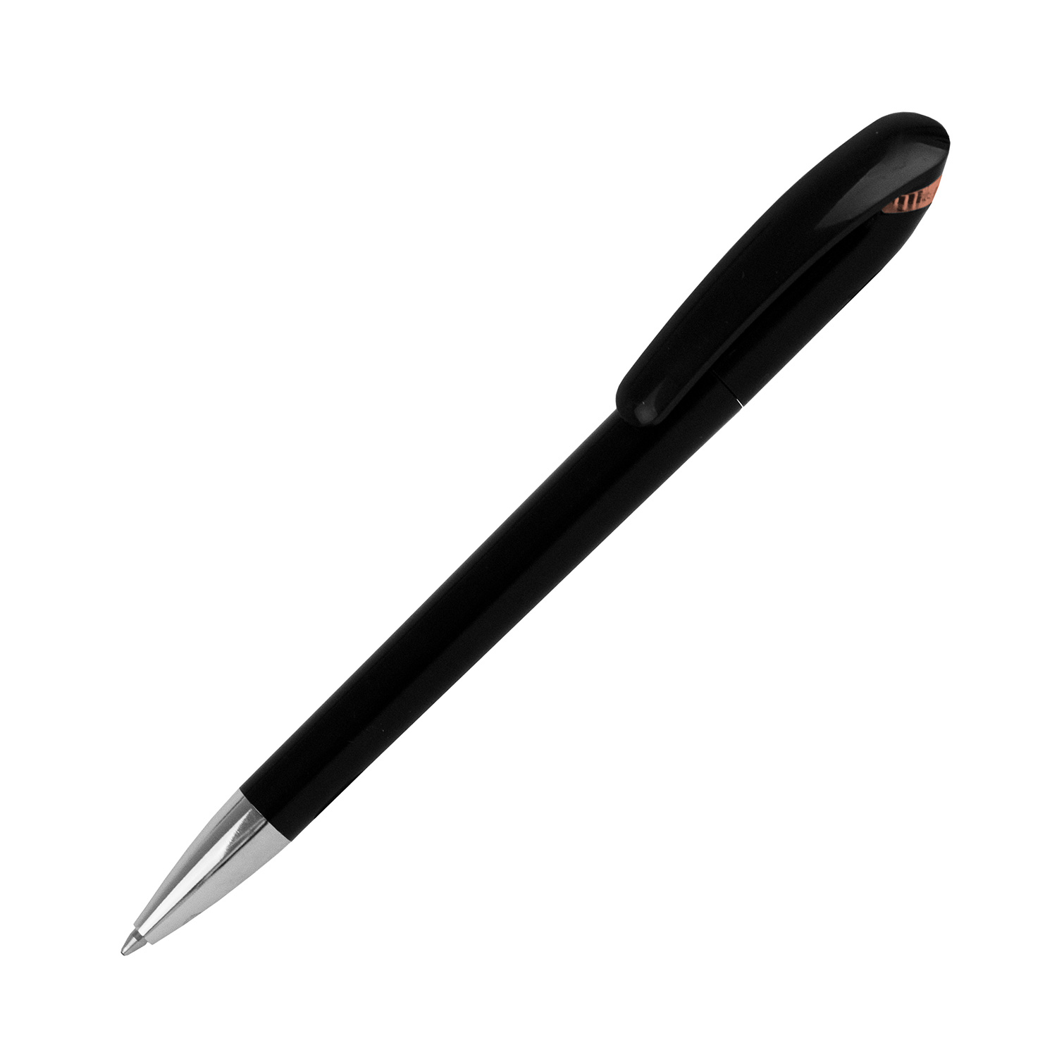 Drehkugelschreiber, Schaft und Clipteil in schwarz, Oberfläche hochglanzpoliert,
