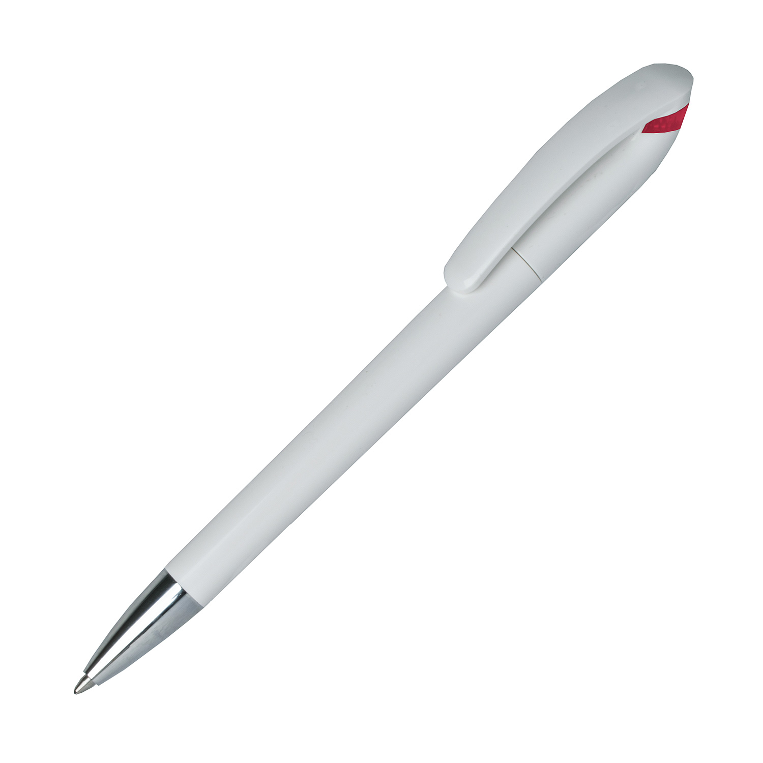 Drehkugelschreiber, Schaft und Clipteil in weiß, Oberfläche hochglanzpoliert,