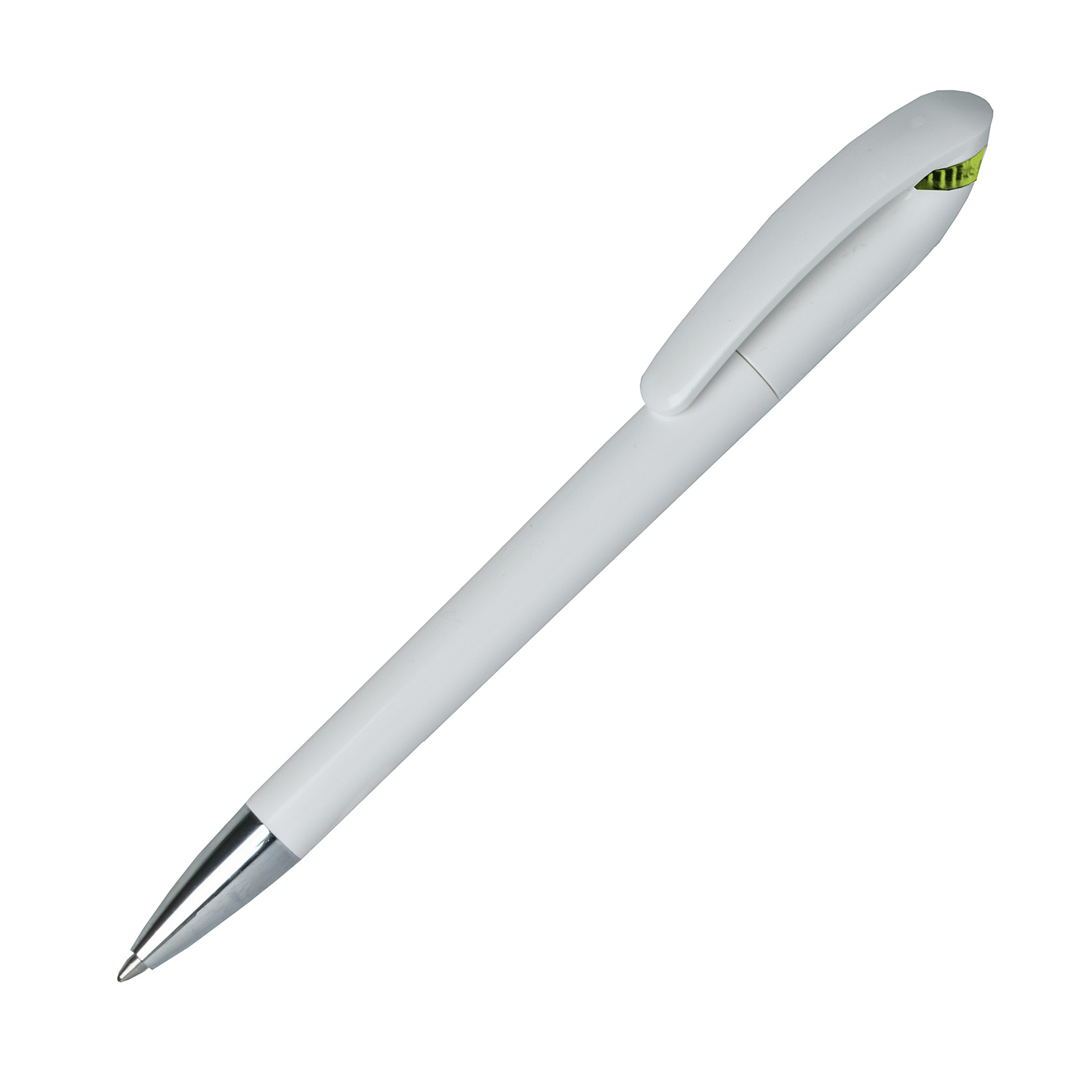 Drehkugelschreiber, Schaft und Clipteil in weiß, Oberfläche hochglanzpoliert,