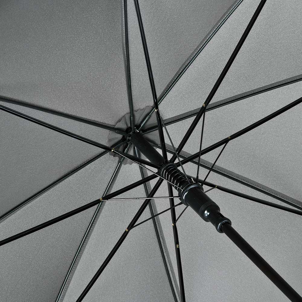 Komfortable Automatik-Funktion zum schnellen Öffnen, Windproof-Features für höhere Gestell-Flexibilität und bessere Windsicherheit, flexible Fiberglasschienen, Griff mit laserfähigem Griffring, höherer Korrosionsschutz durch schwarze Galvanisierung des Stahlstocks