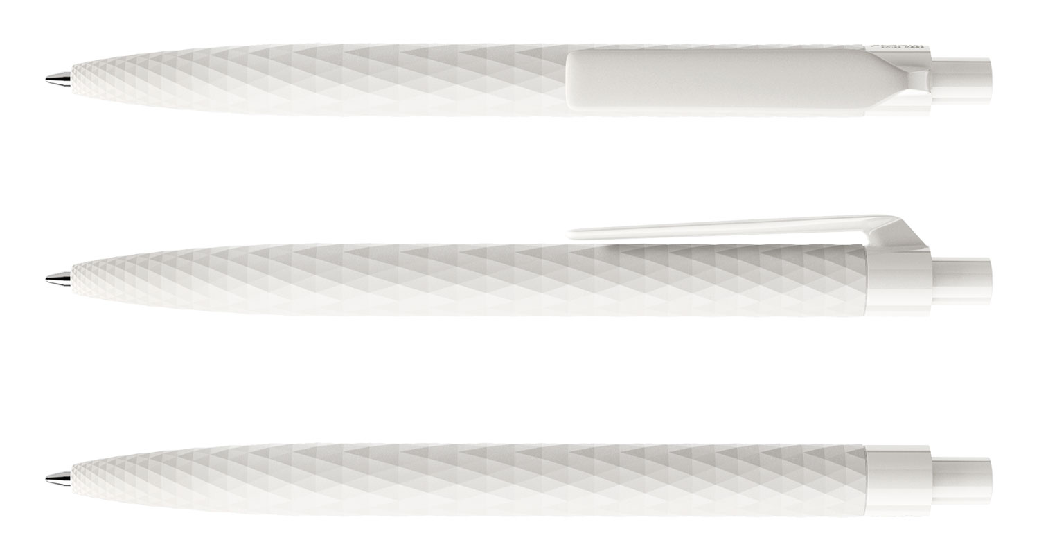 Das Muster im und nicht auf dem Schreibgerät eröffnet eine neue Dimension in Ästhetik und Kommunikation. Beim QS01 als faszinierend facettenreiche Dreiecksstruktur, die sich dem Auge immer wieder neu und anders darstellt und von den Fingerspitzen als angenehme Grifffläche erlebt wird.