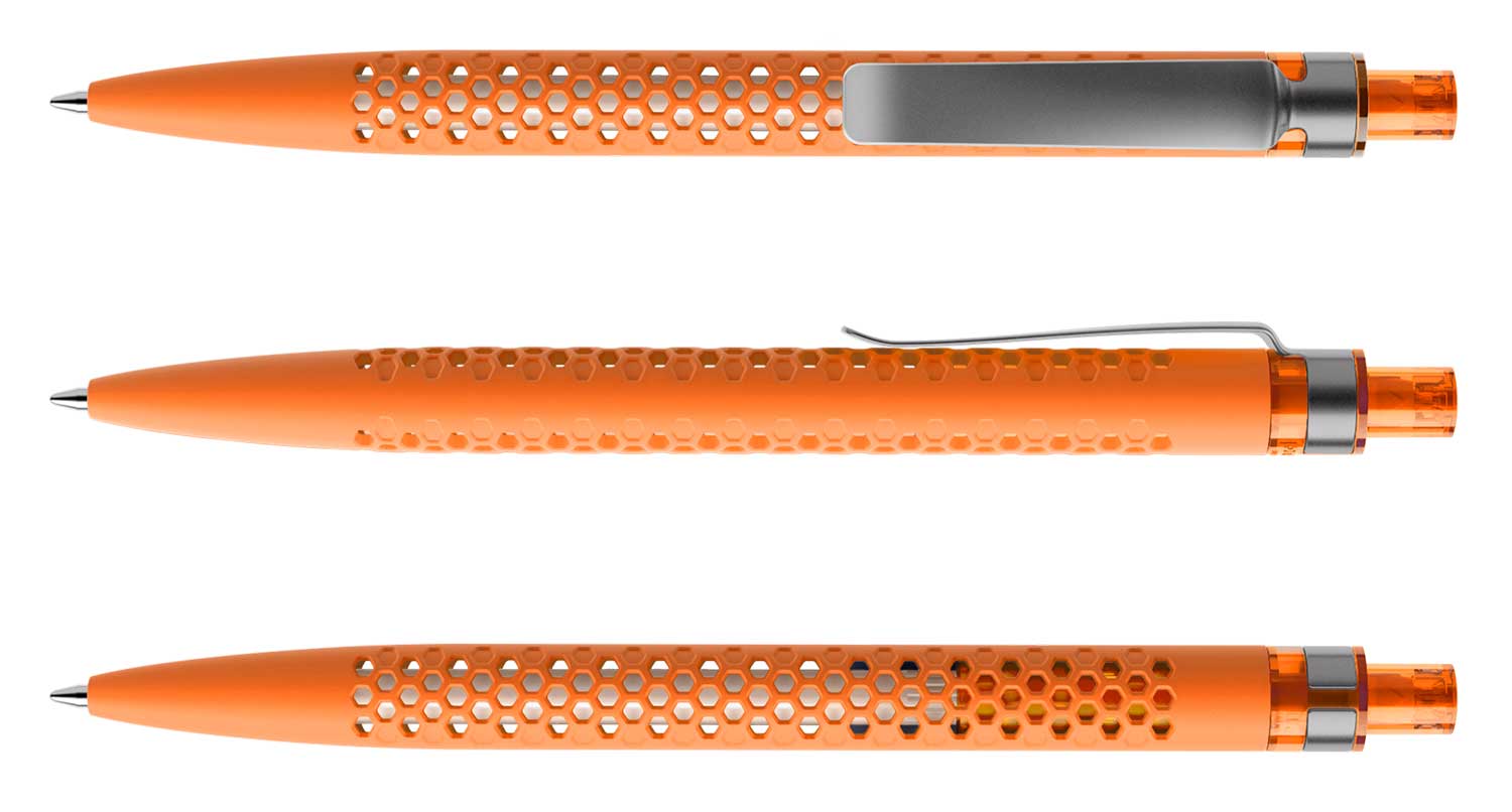 Wertige Personalisierungsmöglichkeiten wie Clips in verschiedenen Formen, Materialien und Finishs, farblich abgesetzte Clip-Holder für Metall-Clips, edle Metall-Druckknöpfe, antimikrobielle Oberflächenbehandlung sowie schadstoffarme Schreibsysteme machen den QS40 zu einem vielseitigen, ausdrucksstarken Markenbotschafter.