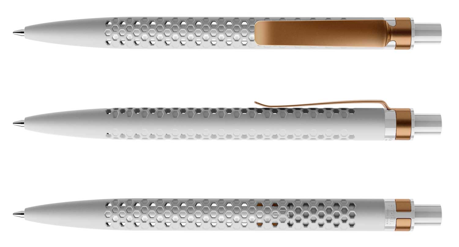 Wertige Personalisierungsmöglichkeiten wie Clips in verschiedenen Formen, Materialien und Finishs, farblich abgesetzte Clip-Holder für Metall-Clips, edle Metall-Druckknöpfe, antimikrobielle Oberflächenbehandlung sowie schadstoffarme Schreibsysteme machen den QS40 zu einem vielseitigen, ausdrucksstarken Markenbotschafter.
