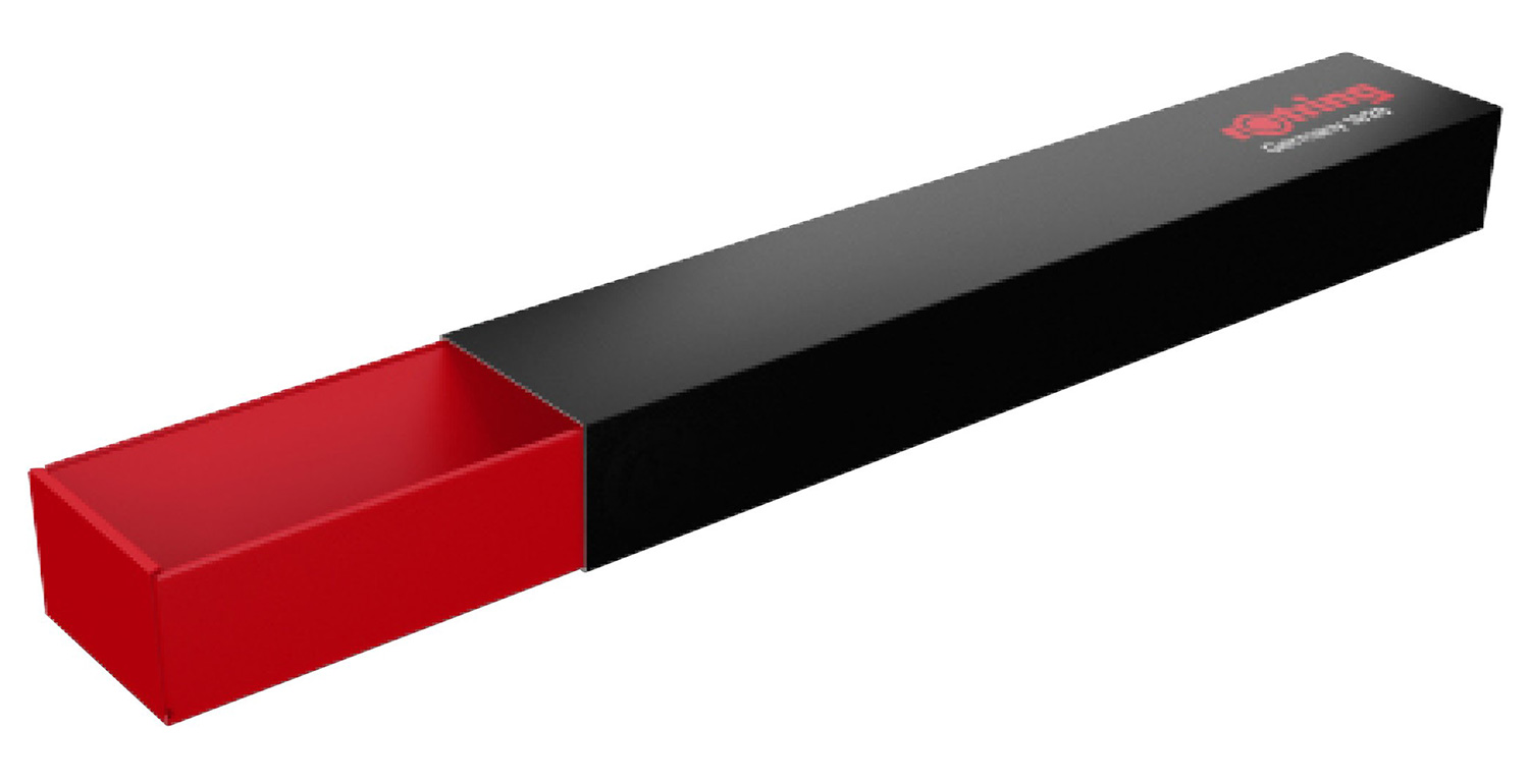 Im Lieferumfang enthalten ist eine blau schreibende M-Mine, verpackt in der Rotring-Standard-Box.
